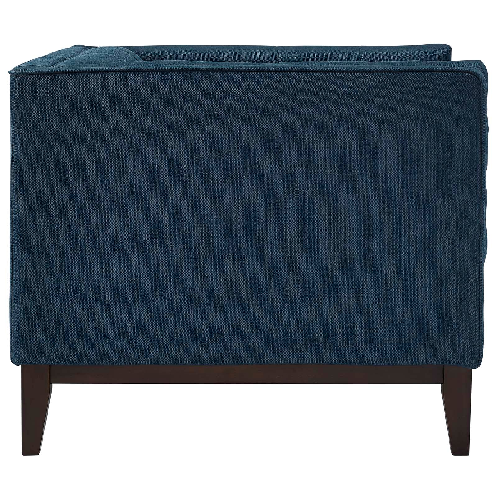 Further your sensibilities with Serve. Elegantly inset with a central line of tufted buttons and fine polyester upholstery, Serve enhances an ambiance of exceptionalism with a refined design that spans the ages. Serve features dense foam cushioning, walnut stained wood legs with non-marking foot caps, and a supportive seating experience. This modern take on mid-century design is perfect for living rooms, lounge spaces, and reception areas.