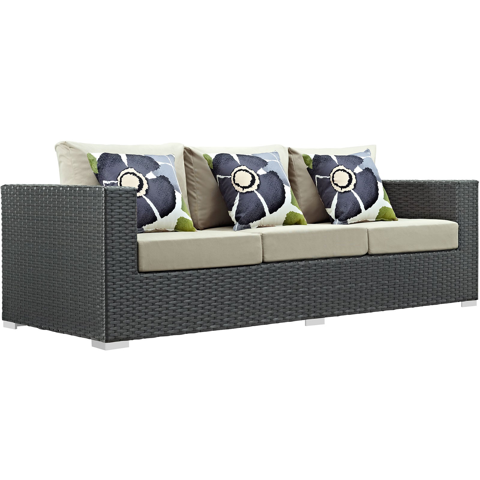 Outfit your patio with an imaginative Sojourn Outdoor Patio Furniture series. The Sojourn Patio Outdoor Collection offers a robust seating experience that easily rearranges according to usage. Outfitted with industry-leading Sunbrella® fabric cushions, synthetic rattan weave, UV protection, powder-coated aluminum frame, immensely enjoy your outdoor time with an outdoor conversation set that enhances patio, backyard, or poolside areas. This installment of the series is an Outdoor Patio Furniture Set. Set Includes: One - Sojourn Rattan Outdoor Patio Coffee Table One - Sojourn Rattan Outdoor Patio Ottoman One - Sojourn Rattan Outdoor Patio Sofa