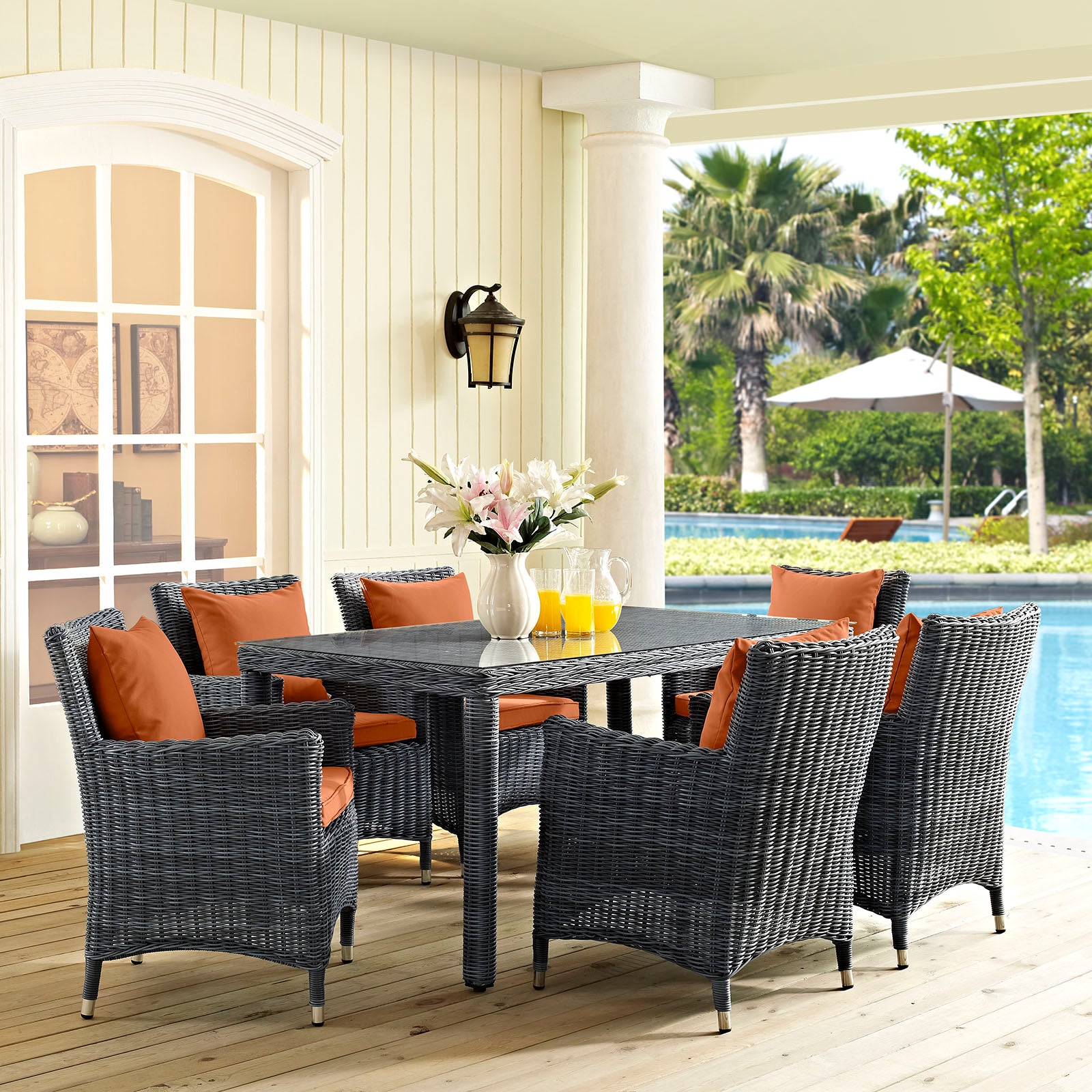 Experience the outdoors with exceptional comfort and quality. Summon Outdoor Patio 59" Rectangle Dining Table offers an exquisite two-tone synthetic rattan weave, UV protection, and a sturdy powder-coated aluminum frame. Featuring an elegant modern look, Summon Patio Dining Table is part of an avant-garde outdoor sectional series well-equipped for enhancing patio, backyard, or poolside gatherings. Umbrella Not included. This installment of the series is an Outdoor Patio Dining Table.
